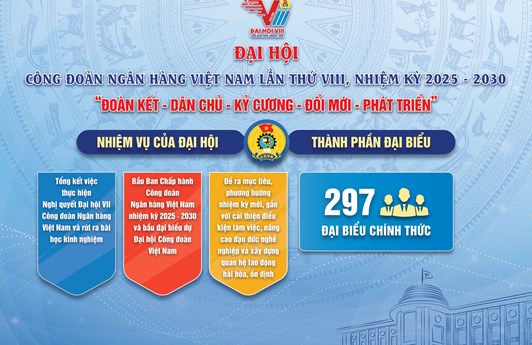 Ngày 25-26/12/2025, tại Hà Nội, Công đoàn Ngân hàng Việt Nam sẽ long trọng tổ chức Đại hội đại biểu lần thứ VIII, nhiệm kỳ 2025 – 2030. Đây là sự kiện chính trị quan trọng, ngày hội của đoàn viên, người lao động ngành Ngân hàng.