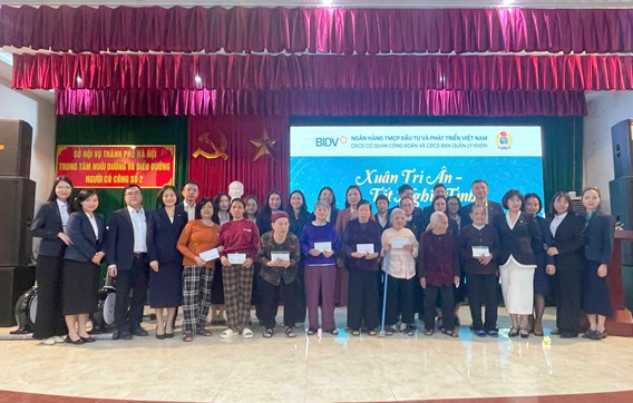 Nhân dịp Tết Nguyên đán Bính Ngọ 2026, Công đoàn cơ sở Cơ quan Công đoàn BIDV phối hợp với Công đoàn cơ sở Ban Quản lý Khách hàng Doanh nghiệp tổ chức chương trình “Xuân tri ân – Tết nghĩa tình” tại Trung tâm Nuôi dưỡng và Điều dưỡng người có công số 2 Hà Nội.