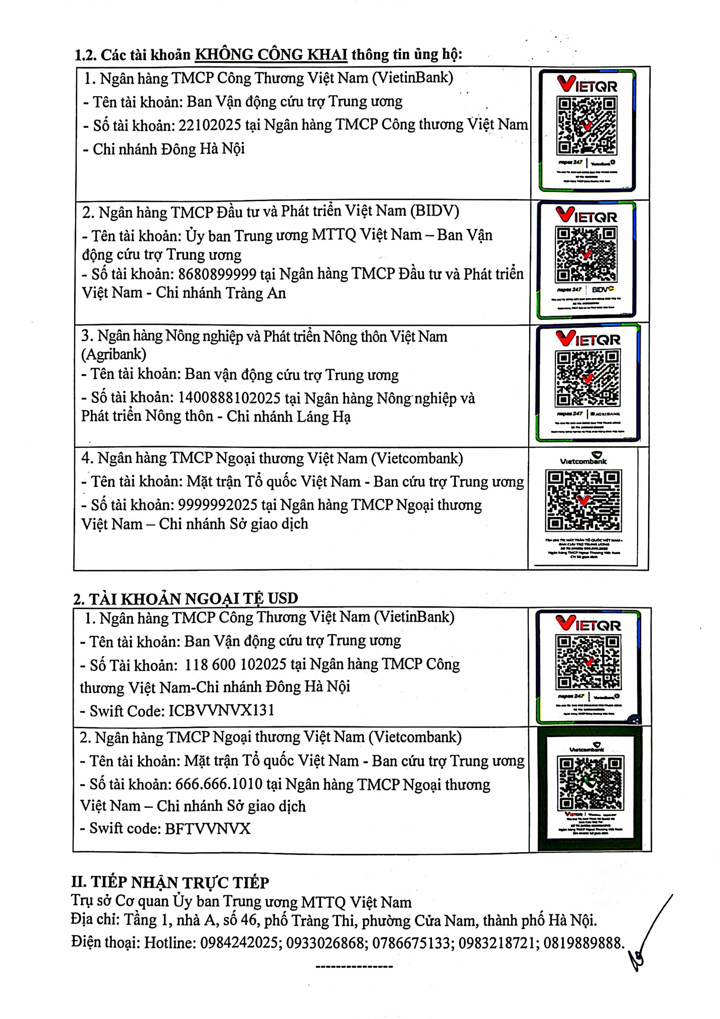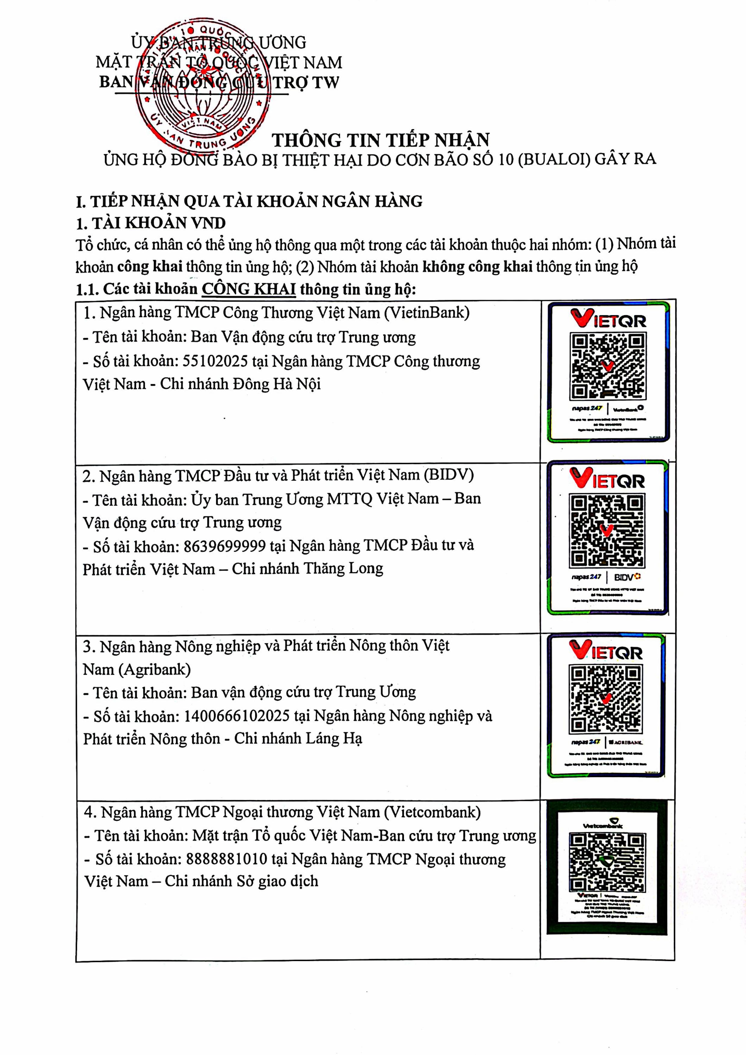 Nguồn ủng hộ chuyển về Ban Vận động cứu trợ Trung ương – Ủy ban Trung ương Mặt trận Tổ quốc Việt Nam (Thông tin ủng hộ xem bên dưới).
