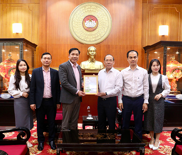 Phó Chủ tịch Ủy ban Trung ương MTTQ Việt Nam Hoàng Công Thủy trao thư cảm ơn cho NHCSXH
