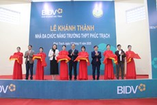 Tại xã Phúc Trạch, BIDV Hà Tĩnh cũng tài trợ 5,5 tỷ đồng xây dựng nhà đa chức năng ở Trường THPT Phúc Trạch với mong muốn góp phần cải thiện điều kiện học tập, rèn luyện thể chất cho học sinh. Công trình có tổng mức đầu tư hơn 6 tỷ đồng gồm dãy nhà 1 tầng đa chức năng và công trình phụ đã được hoàn thành khang trang, hiện đại, đáp ứng nhu cầu sinh hoạt, học tập và phát triển toàn diện của học sinh.