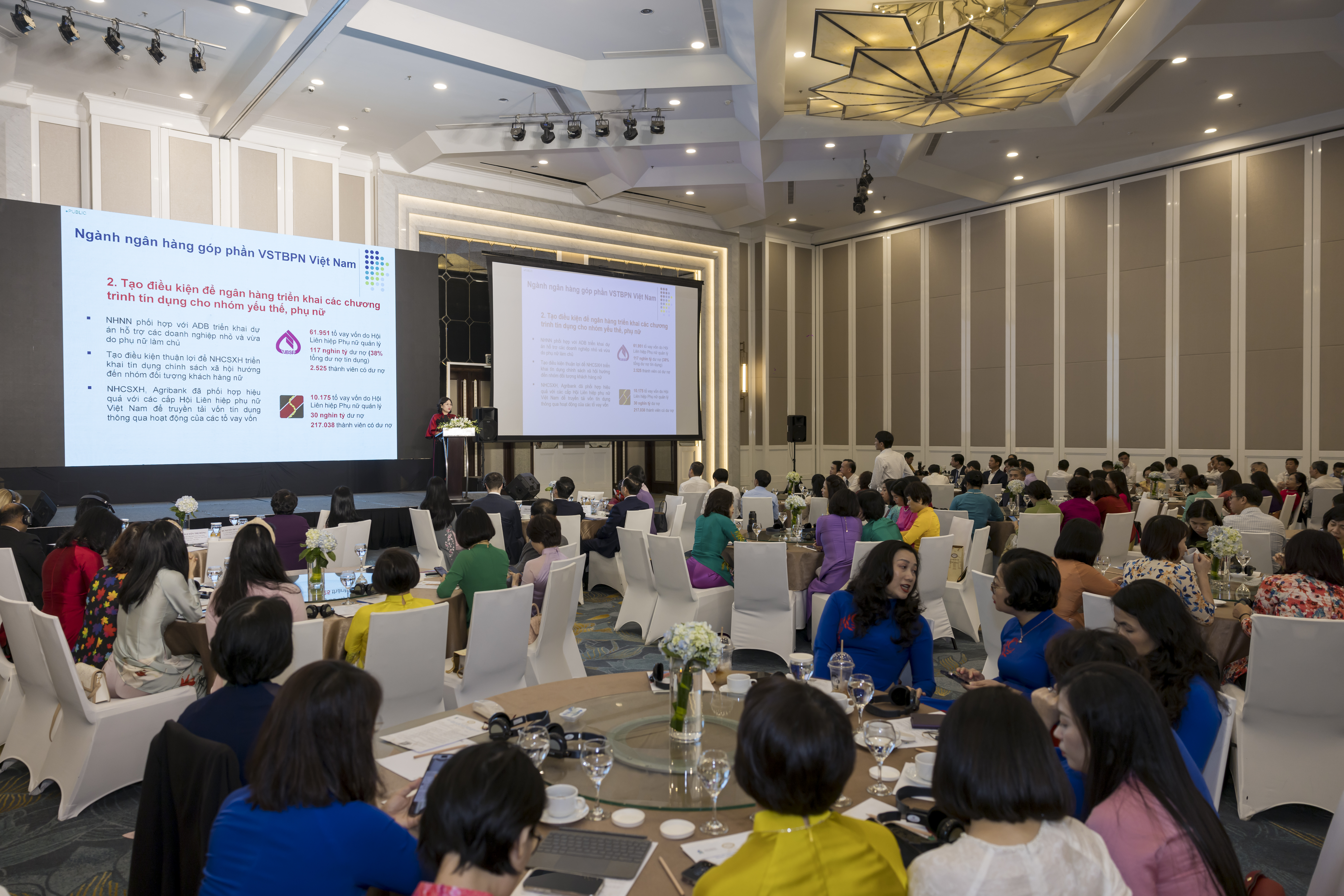 Đến tháng 6/2025, toàn hệ thống ngân hàng có 191.543 cán bộ, đoàn viên, người lao động, trong đó nữ chiếm khoảng 54% (tương đương khoảng 103.433 người) với đa số có trình độ từ đại học trở lên tỷ lệ nữ lãnh đạo quản lý và cấp vụ tương đương trở lên đạt trên 30%. Thống đốc Ngân hàng Nhà nước Việt Nam (NHNN) Nguyễn Thị Hồng ghi nhận, dù ở bất kỳ đâu, công tác ở bất cứ vị trí nào, chị em phụ nữ ngành Ngân hàng nói chung và các nữ lãnh đạo nói riêng luôn thể hiện được bản lĩnh, trí tuệ, cống hiến hết mình, đóng góp vào sự phát triển của ngành Ngân hàng và kinh tế đất nước.