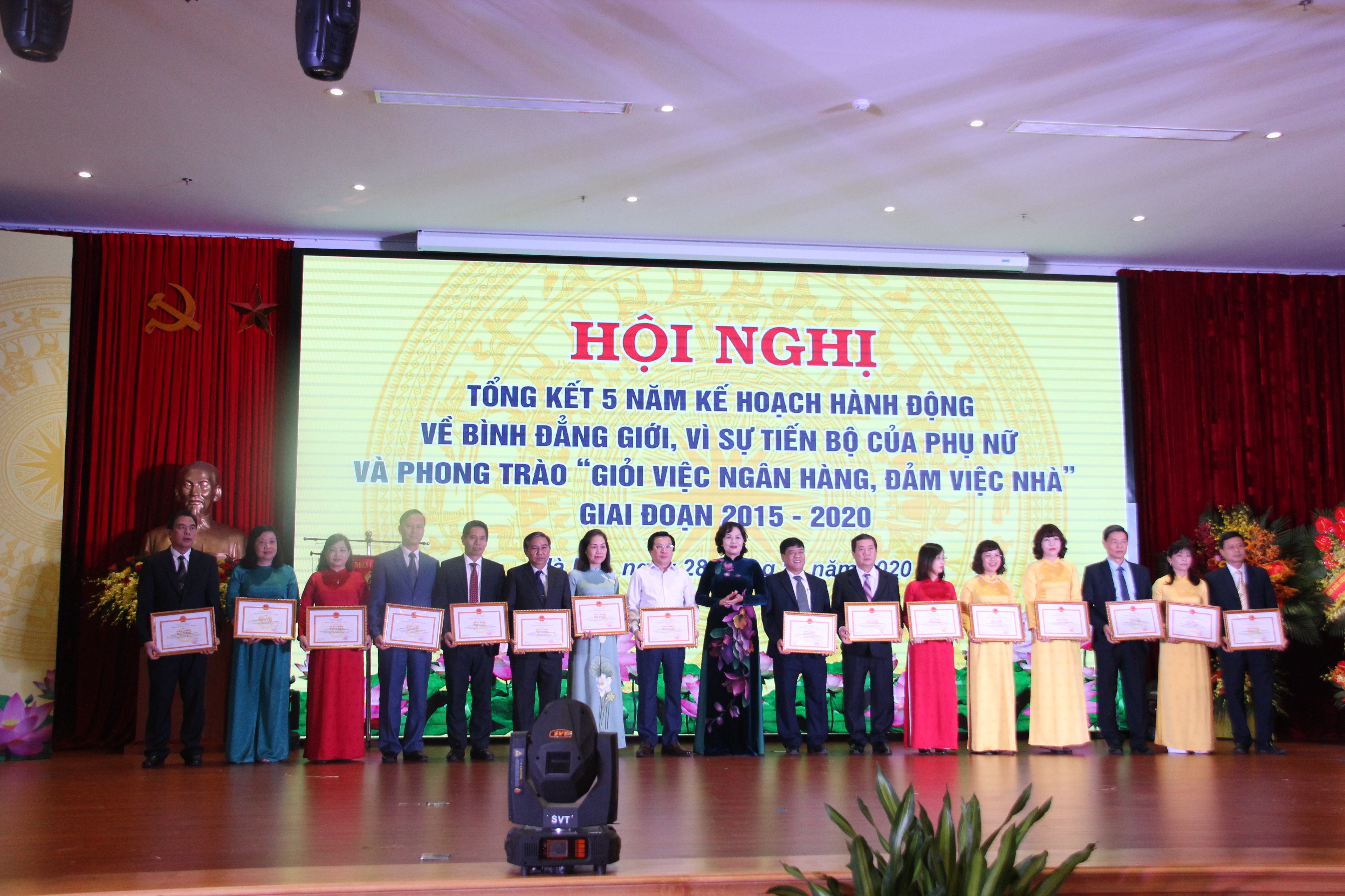 Thống đốc NHNN Nguyễn Thị Hồng trao Bằng khen cho các tập thể xuất sắc tại Hội nghị tổng kết 5 năm thực hiện Kế hoạch hành động về bình đẳng giới, vì sự tiến bộ của phụ nữ và phong trào thi đua “Giỏi việc ngân hàng, đảm việc nhà” giai đoạn 2015-2020