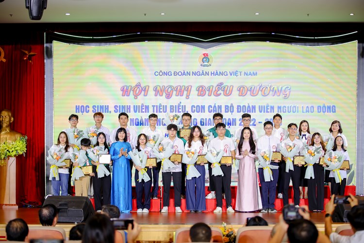 Con em của cán bộ, người lao động luôn được quan tâm biểu dương từ cấp cơ sở đến ngành. Riêng Công đoàn NHVN 2 lần tổ chức biểu dương khen thưởng học sinh, sinh viên tiêu biểu là con đoàn viên, người lao động giai đoạn 2019 - 2022 và giai đoạn 2022- 2025. Theo số liệu thống kê chưa đầy đủ, trong 5 năm qua các cấp công đoàn trong Ngành đã biểu dương khen thưởng, tặng quà cho khoảng 13.000 lượt con em CBĐVNLĐ đạt thành tích cao trong học tập và những trường hợp có hoàn cảnh khó khăn, hoàn cảnh đặc biệt, với tổng số tiền gần 20 tỷ đồng. Hỗ trợ, giúp đỡ kịp thời hơn 17.000 lượt nữ ĐVNLĐ có hoàn cảnh khó khăn, với tổng số tiền hơn 55 tỷ đồng từ nguồn Quỹ Tình nghĩa Ngân hàng và nguồn quyên góp ủng hộ từ CBĐVNLĐ.