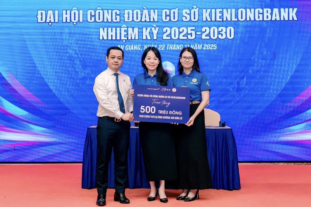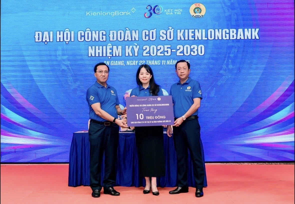 Tại Đại hội, Công đoàn Cơ sở KienlongBank tiếp tục kêu gọi công đoàn viên tham dự, tiếp tục kết nối ủng hộ nhân viên và đồng bào miền Trung bị ảnh hưởng do thiên tai bão lũ. Đây cũng là hoạt động mà Công đoàn Cơ sở khẩn trương và nhanh chóng phát động khi theo dõi sát sao tình hình lũ xảy ra ở miền Nam Trung Bộ và Tây Nguyên. Trong khuôn khổ diễn ra Đại hội, Ngân hàng và Công đoàn đã trao tặng 500 triệu đồng cho cán bộ, nhân viên khu vực miền Trung bị ảnh hưởng do thiên tai và trao tặng 10 triệu đồng cho gia đình CTV bị mất do bão lũ, thể hiện tinh thần tương thân tương ái của người Kiên Long.