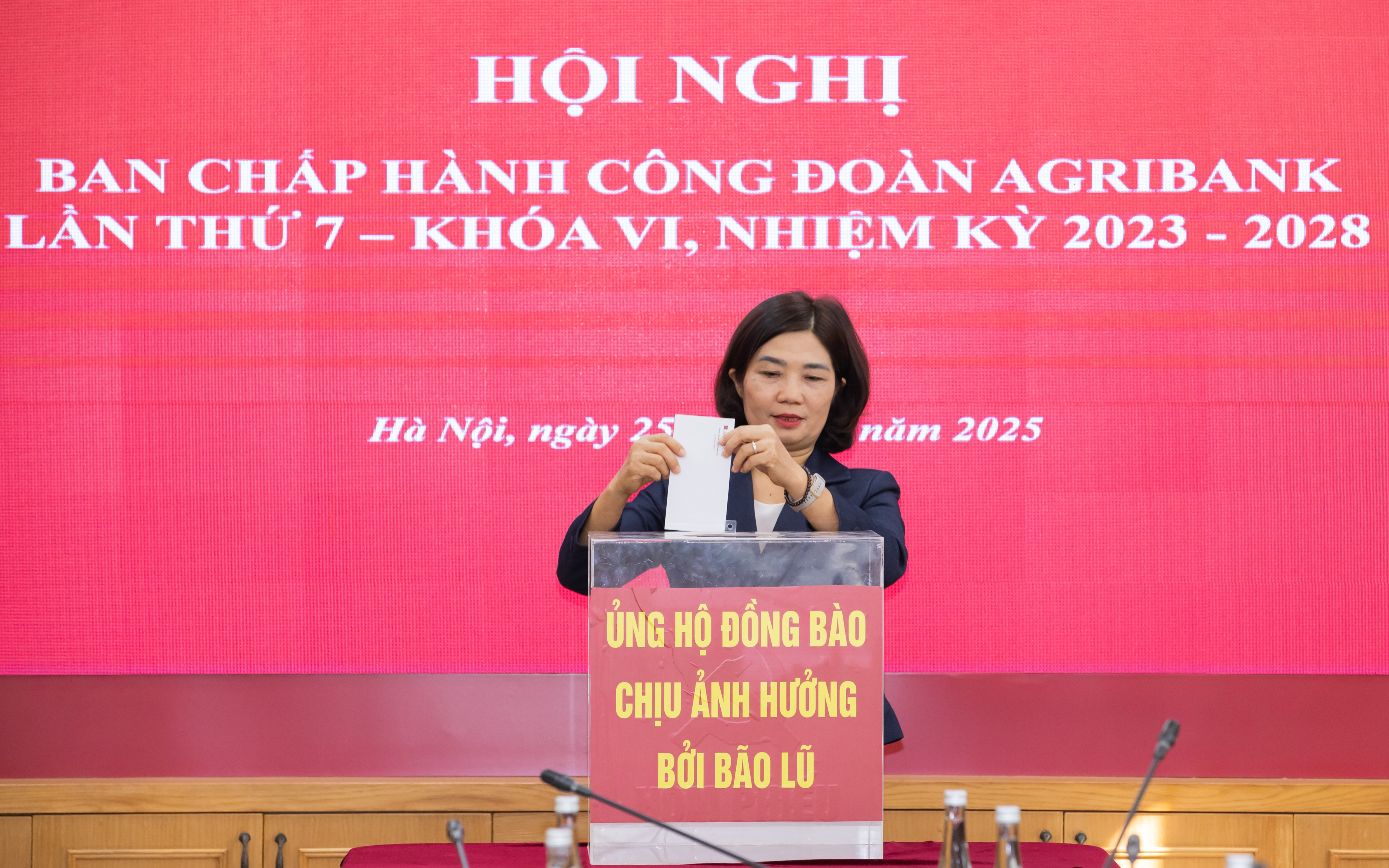 Cũng tại Hội nghị, Công đoàn Agribank đã phát động ủng hộ các địa phương chịu ảnh hưởng nặng nề bởi mưa lũ. Các đại biểu đã hưởng ứng ngay tại hội trường bằng những hành động thiết thực, thể hiện tinh thần trách nhiệm, lòng nhân ái và truyền thống “tương thân, tương ái” - nét đẹp văn hóa được gìn giữ qua nhiều thế hệ cán bộ, người lao động Agribank.